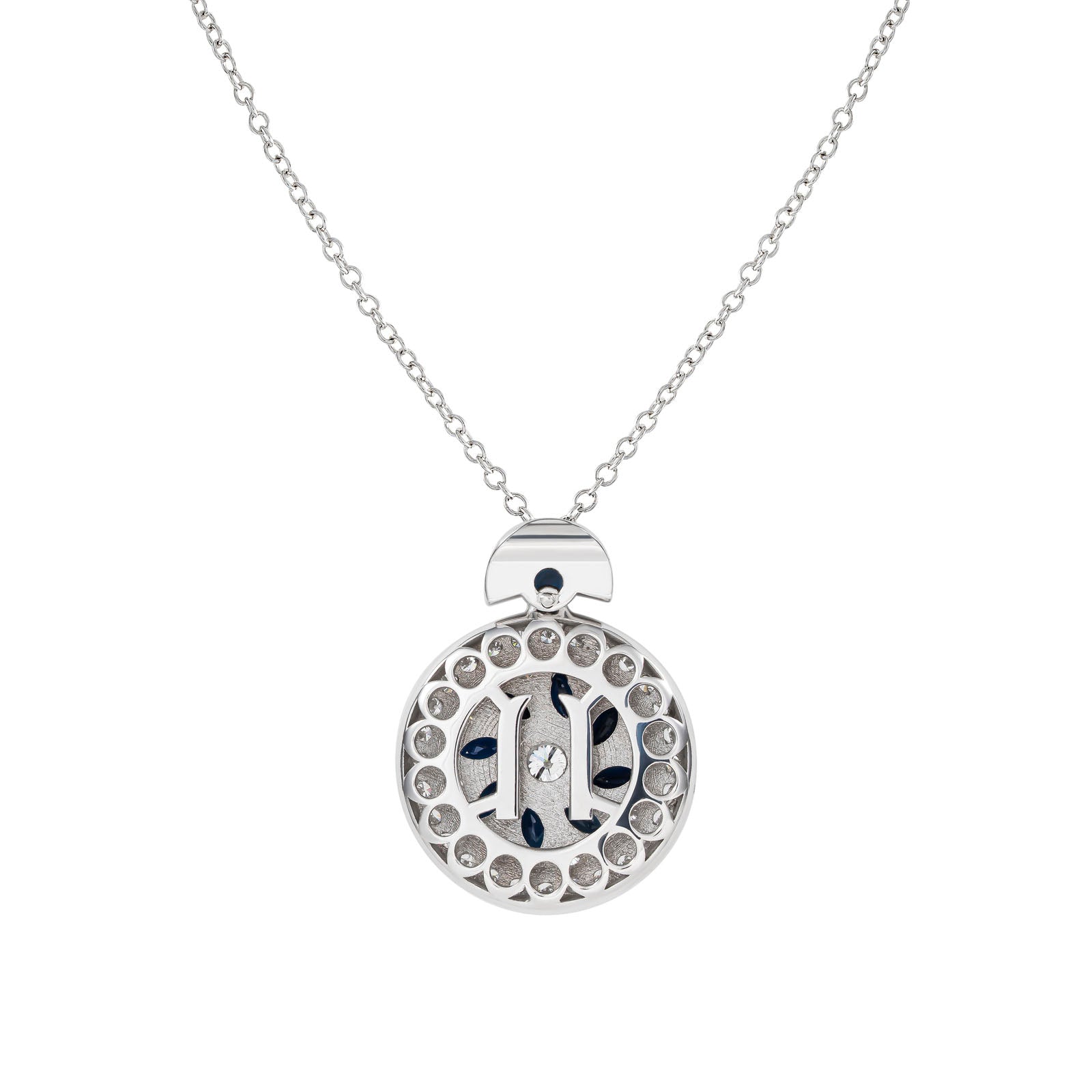 Pendant in 18K white gold set with white diamonds and blue sapphires