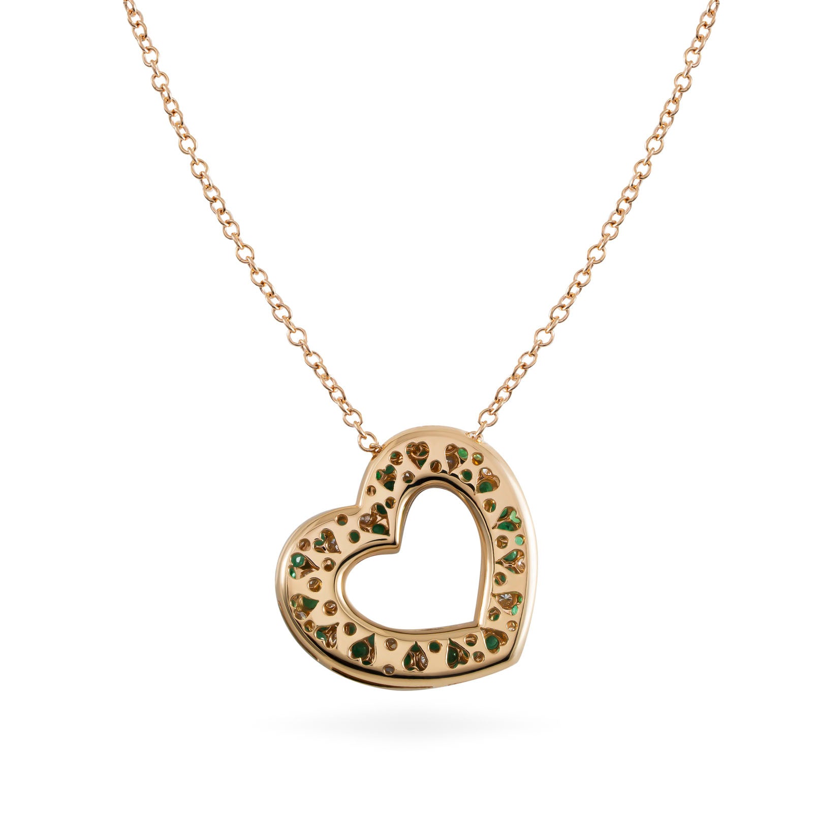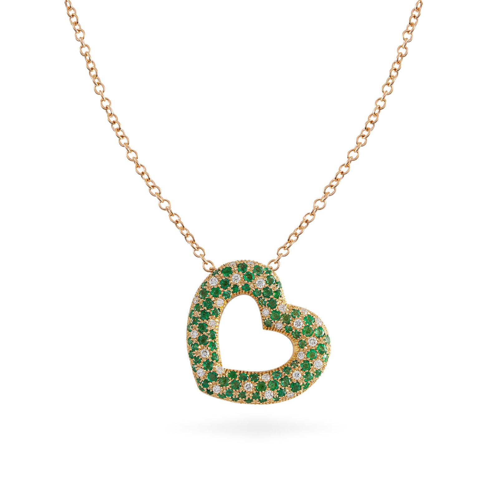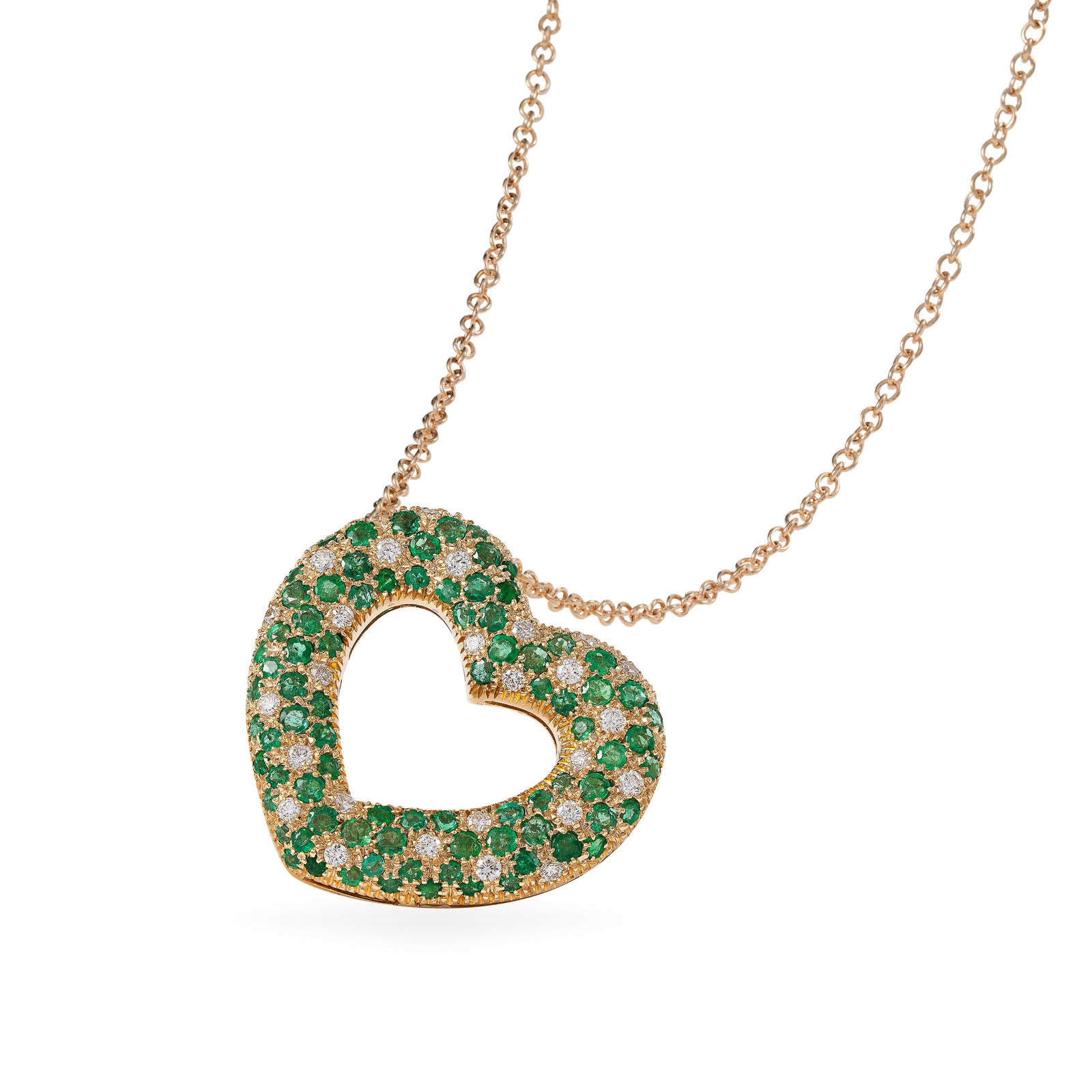 Pendant in 18K rose gold set with white diamonds and emeralds