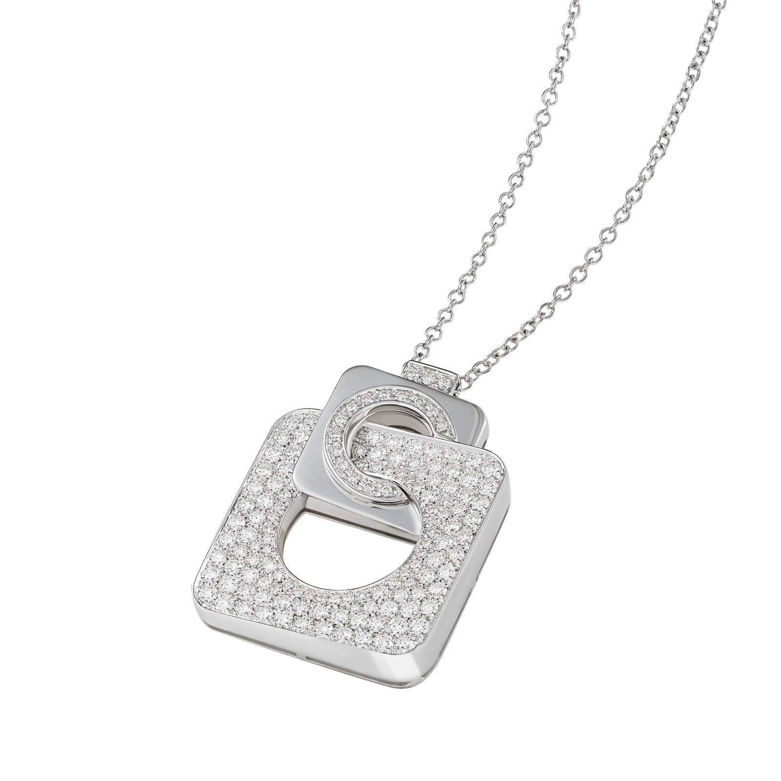 Pendant in 18K white gold set with white diamonds